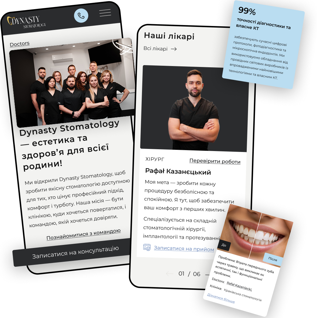 - Микроразметка (клиника, врачи, FAQ), локальные страницы, GA4 и пиксели для заявок.