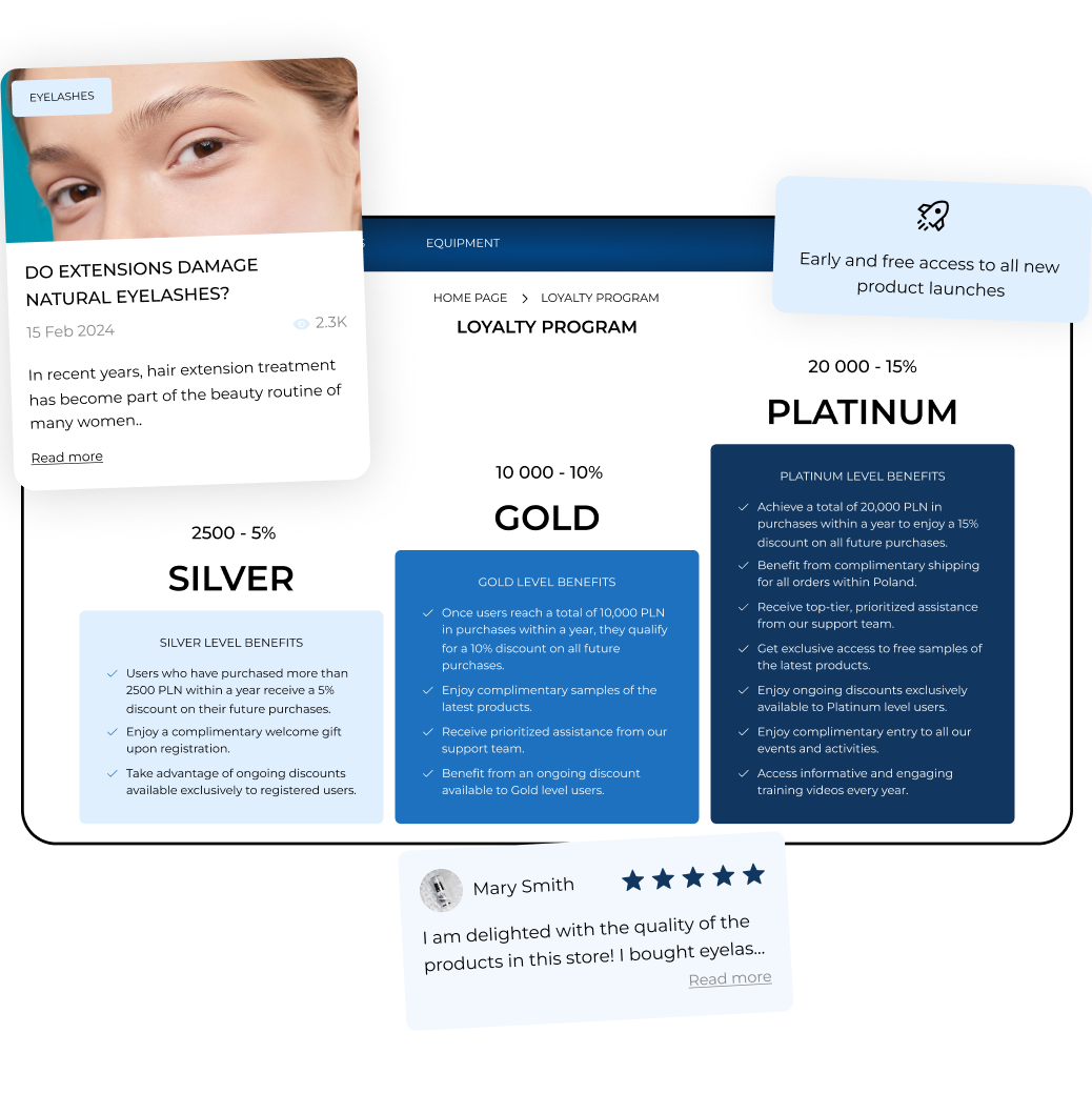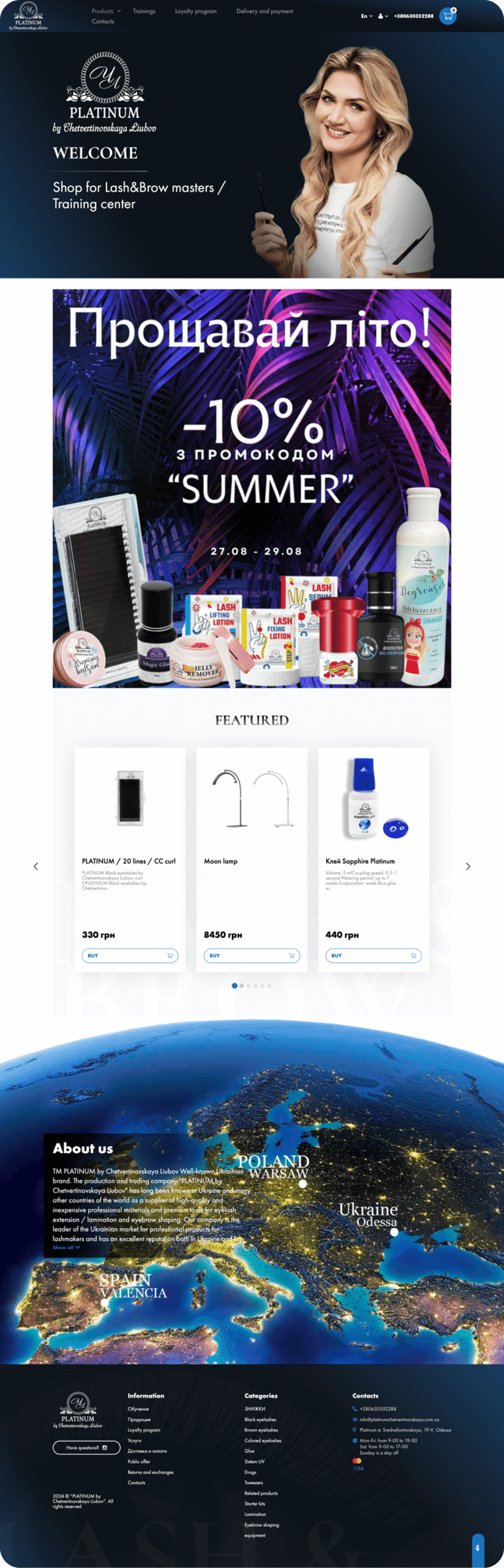 - Блог и карточки статей, страницы «About brand», «Loyalty program», «Brand ambassador»;
