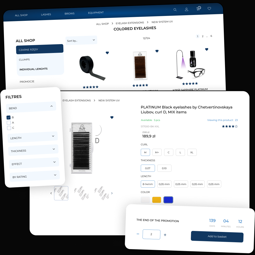 - вариации (curl/thickness/length/color), рейтинг/отзывы;