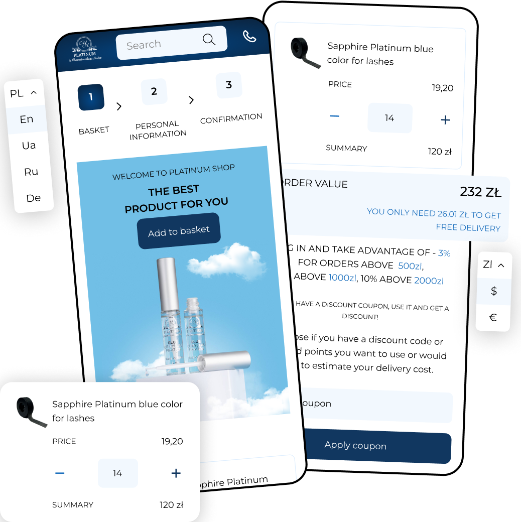 Адаптировать магазин под польский рынок: мультиязычность PL/EN/RU и международная доставка.